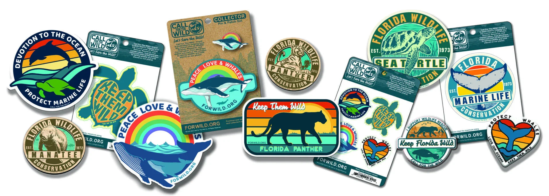 Interested in more than just Call For The Wild Rescue Plush? Support Wildlife Rescue, Research, and Conservation with a growing assortment of accessories for your store. Collectors patches, pins, stickers and magnets are all available for spring 2024. Ask your "Call For The Wild" rep for information on our line of accessories.